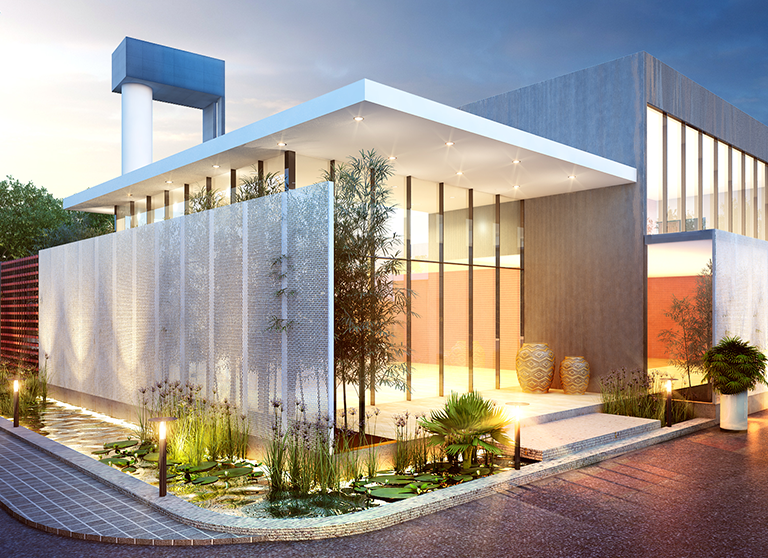 SPRINGFIELDS 17000sqft. exorbitant CLUB HOUSE is designed true to its purpose.Its exterior reflects a material palette similar to all the villas i.e. earthy, rugged and natural with a perfect blend of modernaesthetics, large overhangs, glass facades and landscaped screens to create that interest as one enters.